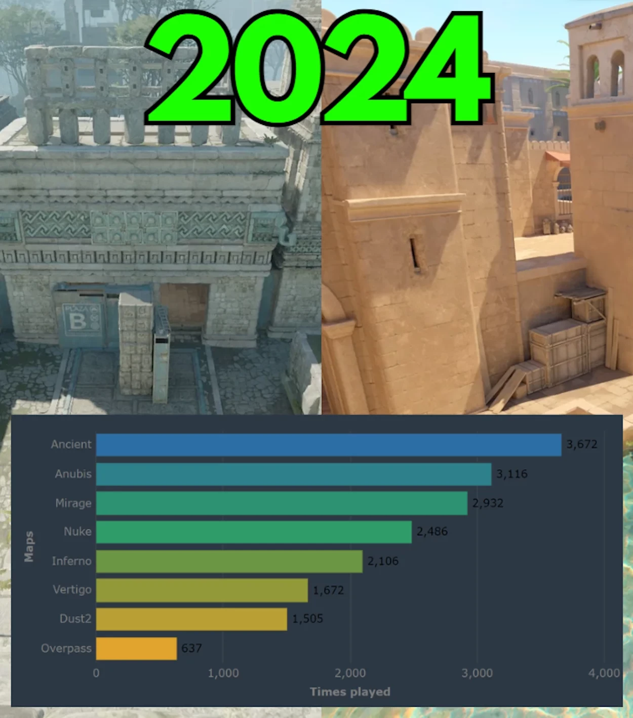 На Ancient в CS 2 сыграли более 3,5 тысяч профессиональных матчей — это топ-1 года