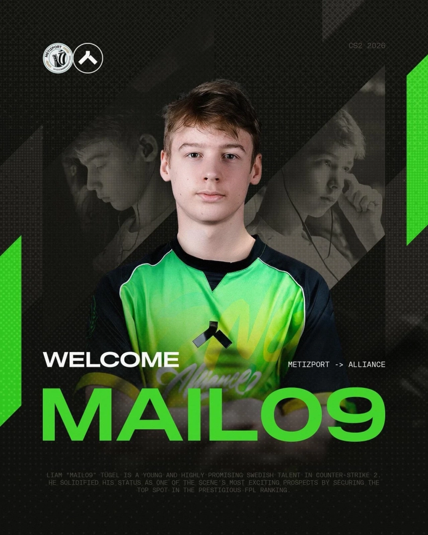 Источник: соцсети AllianceШведский киберспортивный клуб Alliance по Counter-Strike 2 в своих социальных сетях объявил о подписании 16-летнего Лиама «MaiL09» Тюгеля. Рифлер присоединился к коллективу на правах сезонной аренды.