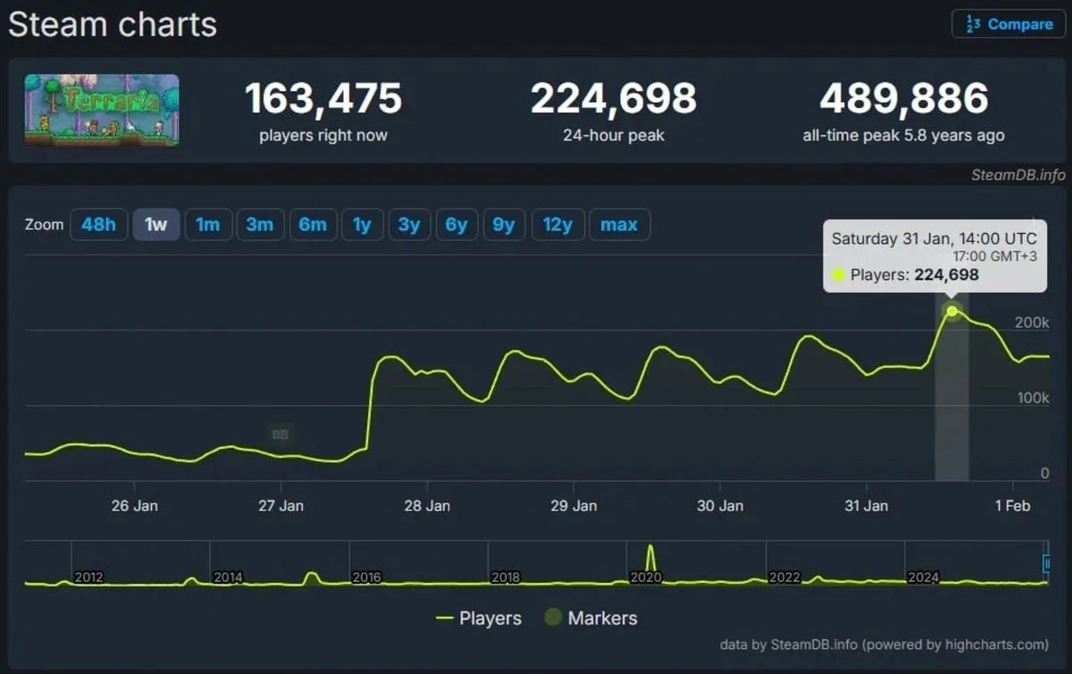 Главные новости » Эксклюзив » Онлайн в Terraria пробил 200 тысяч человек — такое произошло впервые с 2020 года