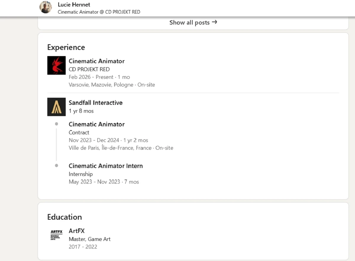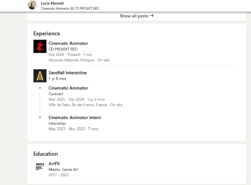 В Sandfall Interactive разработчица пришла ещё в 2023 году, когда проходила стажировку. Она проработала до конца 2024 года и покинула студию до релиза Expedition 33. Её демо представлены в конце новости