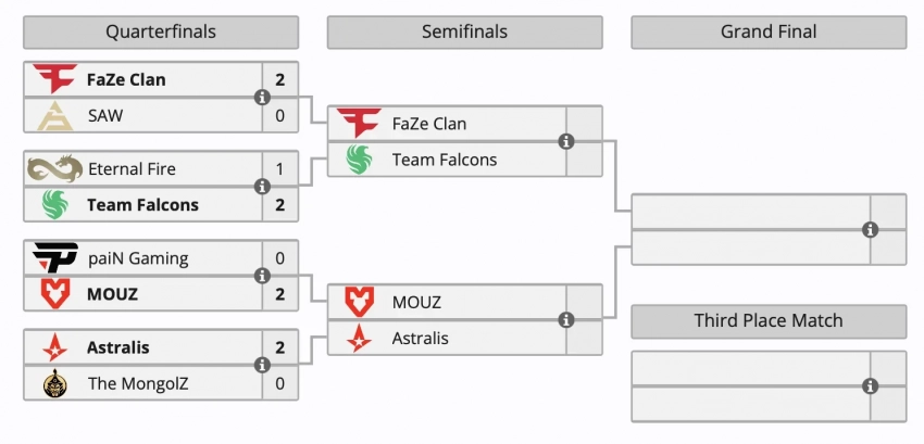 Все три матча завершились со счетом 2:0. Четвертый матч между Eternal Fire и Team Falcons завершился поражение EF со счетом 1:2.