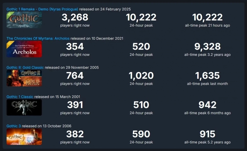 Онлайн демоверсии Gothic 1 Remake в Steam стал рекордным для серии
