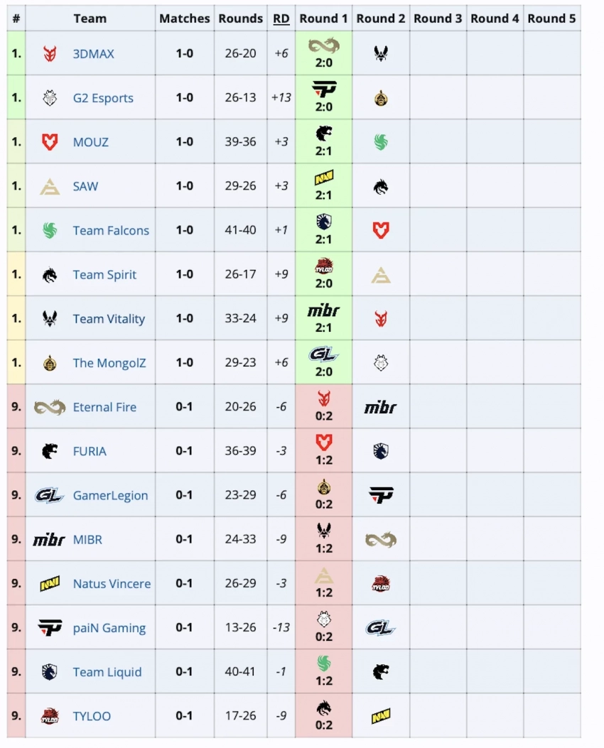 Eternal Fire уступила 3DMAX со счетом 0:2, несмотря на упорную борьбу. Natus Vincere проиграла SAW со счетом 1:2, что стало неожиданностью для многих фанатов. MOUZ легко переиграла FURIA со счетом 2:0, а G2 уверенно победила paiN с аналогичным счетом. Falcons одержала победу над Liquid со счетом 2:1, проявив высокий уровень игры и стойкость.