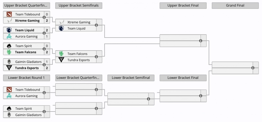 Что касается другой четверки команд, то Team Liquid одолела Aurora Gaming со счетом 2:1, а Team Tidebound уступила Xtreme Gaming со счетом 0:2.