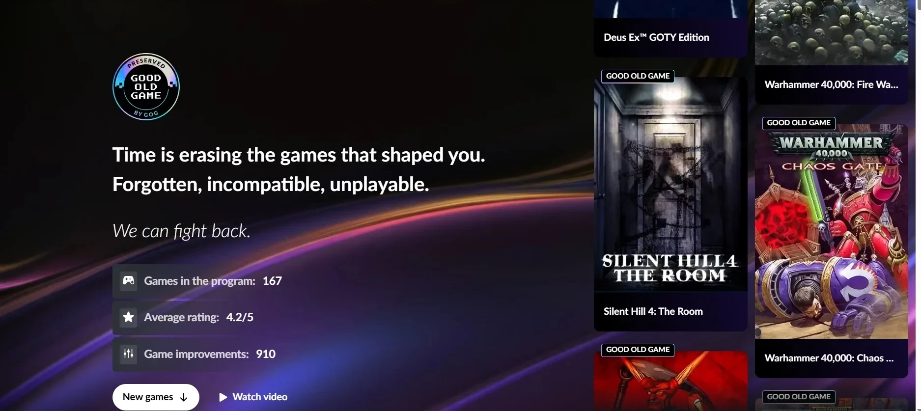 В «программе сохранения игр GOG» уже 167 игр.