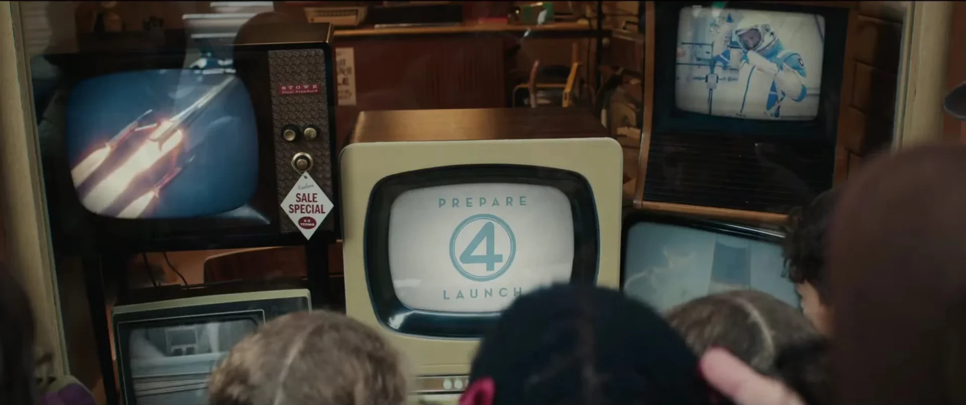 В ролике дети бегут к витрине магазина, где толпа наблюдает на ретро-телевизорах запуск ракеты, экипировку астронавтов, напоминающих Фантастическую четвёрку, и надпись «Prepare 4 Launch» («Готовьтесь к запуску»). Атмосфера передаёт стилистику ретро-футуризма 1960-х, в которых развернётся действие фильма.