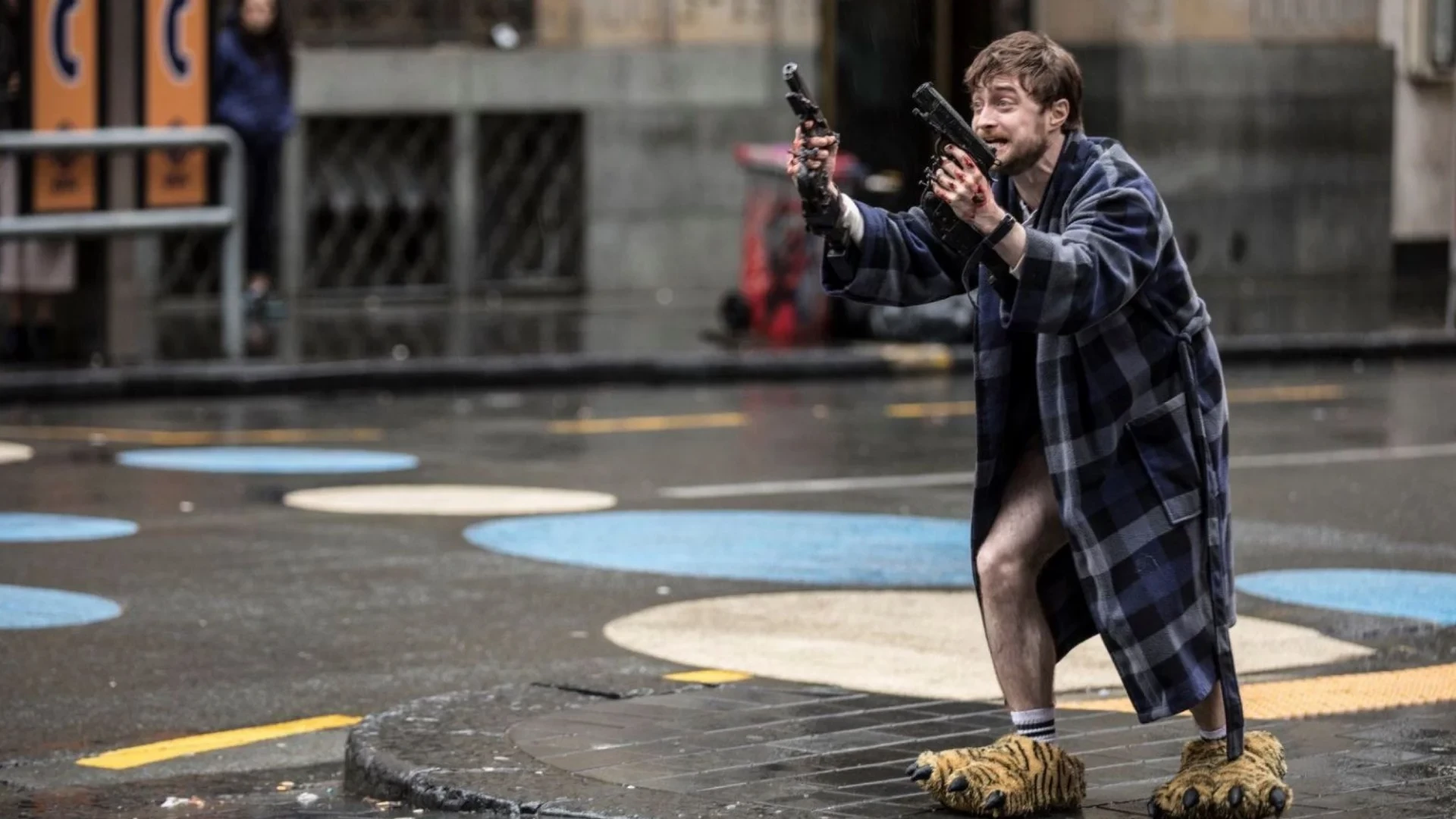 Кино из обоймы «странных фильмов с Рэдклиффом» (в ней же «Рога» и «Человек — швейцарский нож»). Интернет-тролль Майлз однажды неудачно подшучивает над серьёзными типами. Теперь к его рукам намертво прикручена пара пистолетов, а сам парень — герой шоу на выживание. А чтобы победить, ему нужно прикончить чемпионку арены: девушку по кличке Никс.
