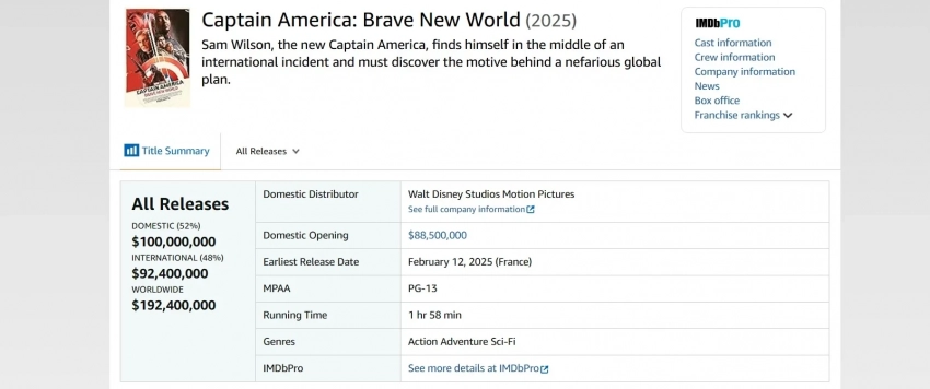 «Капитан Америка: Новый мир» собрал в мировом прокате почти 200 млн долларов