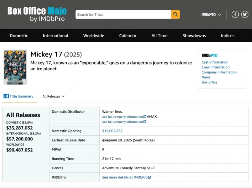 Главные новости » Новости кино » Проваливающийся в прокате «Микки 17» может выйти «в цифре» уже 25 марта