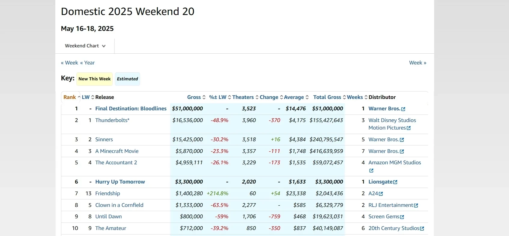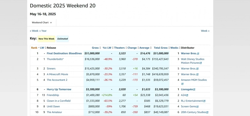Свежий топ-5 кассовых сборов в прокате в США за период с 16 по 18 мая 2025 года: