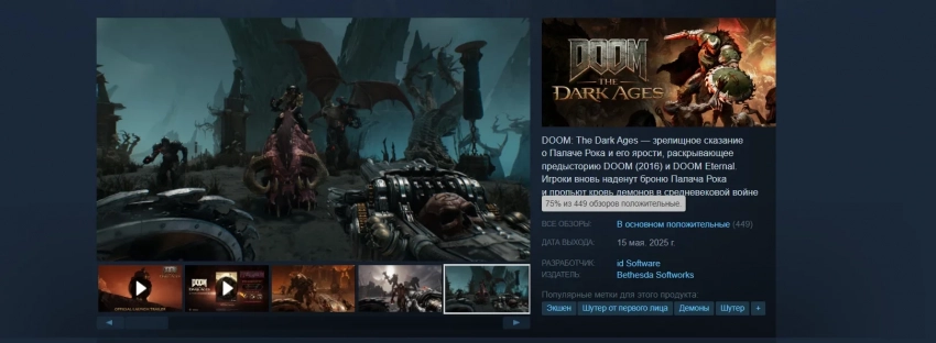 У DOOM: The Dark Ages в расширенном доступе «в основном положительный» рейтинг в Steam