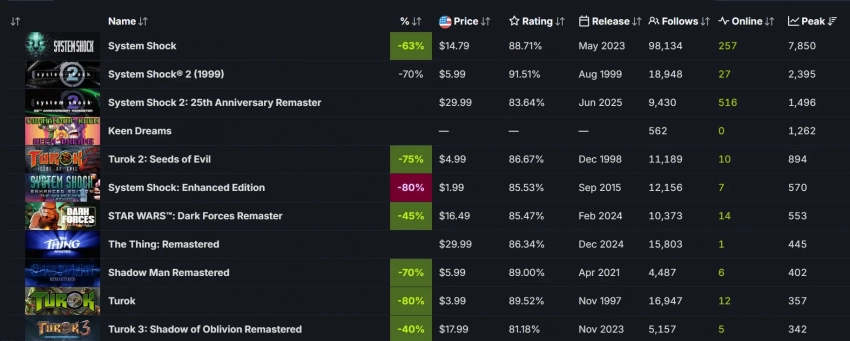 Пиковый онлайн практически достиг отметки в 1500 человек вскоре после релиза. Для игр под издательством Nightdive Studios результат можно назвать отличным — впереди лишь оригинальная версия, а также ремейк System Shock (2023).